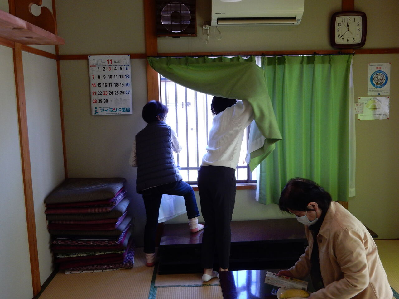 屋内退避訓練の事例として、町会の代表者などに参加していただき、公民館などを自宅に見立て、屋内退避の活動をしてもらいました。